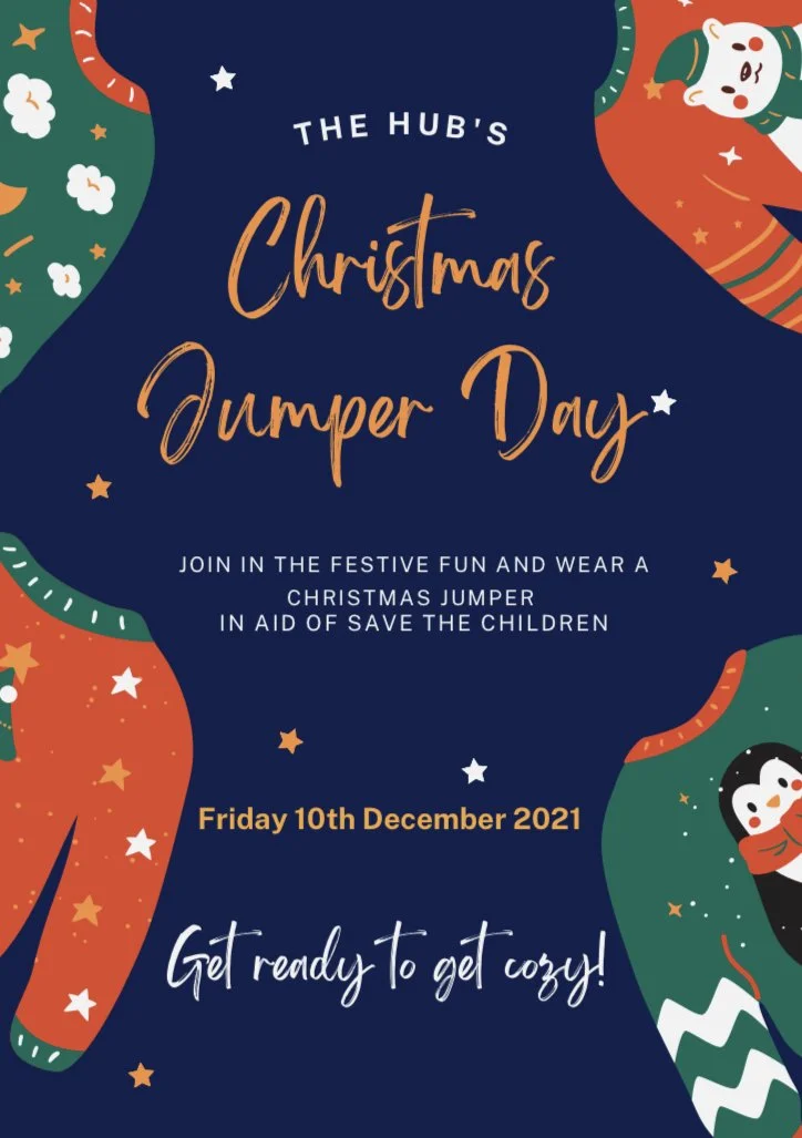 Christmas Jumper Day Friday 10 December 2021 09:00 16:30 The Hub 1 East Street Lincoln, England, LN2 2SL United Kingdom (map) Google Calendar ICS In aid of Save The Children, THE HUB staff and volunteers shall be wearing our Christmas Jumpers! We also encourage everyone to join in the festive spirit and wear your Christmas jumpers too!